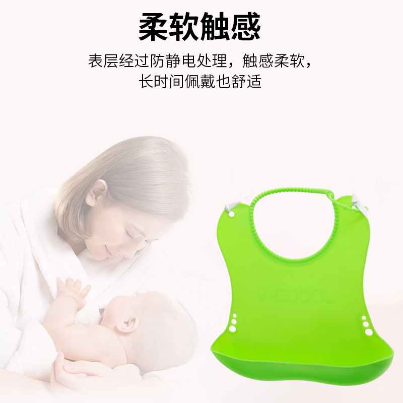 安全的硅膠材質(zhì), 讓您的寶寶愛上吃飯,一抹即凈,輕巧便捷,柔軟無痕,可啃咬食品級硅膠,不用擔(dān)心飯兜材質(zhì)被寶寶啃咬會對寶寶產(chǎn)生身體健康,我們帝博拒絕PBA不利材質(zhì) ,讓寶寶健康安全的成長,家長放心的材質(zhì)立體大飯兜口徑輕松兜住食物殘?jiān)?,媽媽更放心。硅膠材質(zhì)防水、防油、清潔簡易,隨用隨清理,干凈衛(wèi)生,輕巧便捷,柔軟易卷,硅膠質(zhì)地柔軟而不失韌性,來回折疊不留折痕,外出便攜,一卷即走。