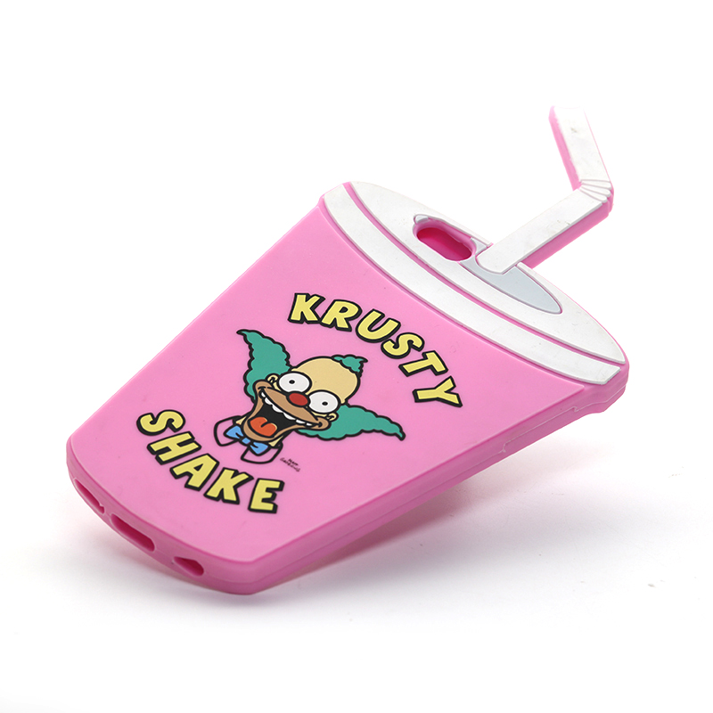 這款飲料杯創(chuàng)意手機(jī)套上面的圖案怎么來的呢?用了兩種工藝,噴油加鐳雕工藝,新穎硅膠手機(jī)套修完邊后在產(chǎn)品表面噴一層有顏色的油墨后再鐳射出圖案,然后表面再噴一層手感油。
